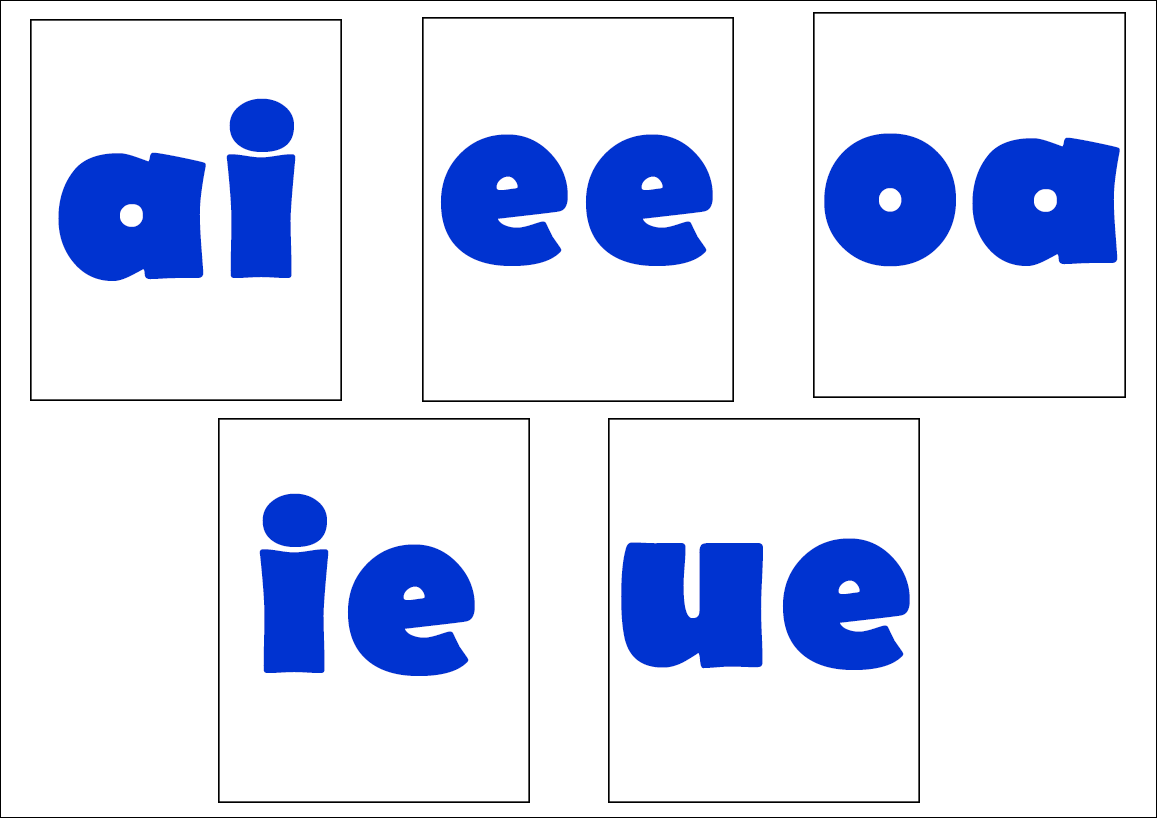Show flashcards of (ai, ee, oa, ie, ue) .